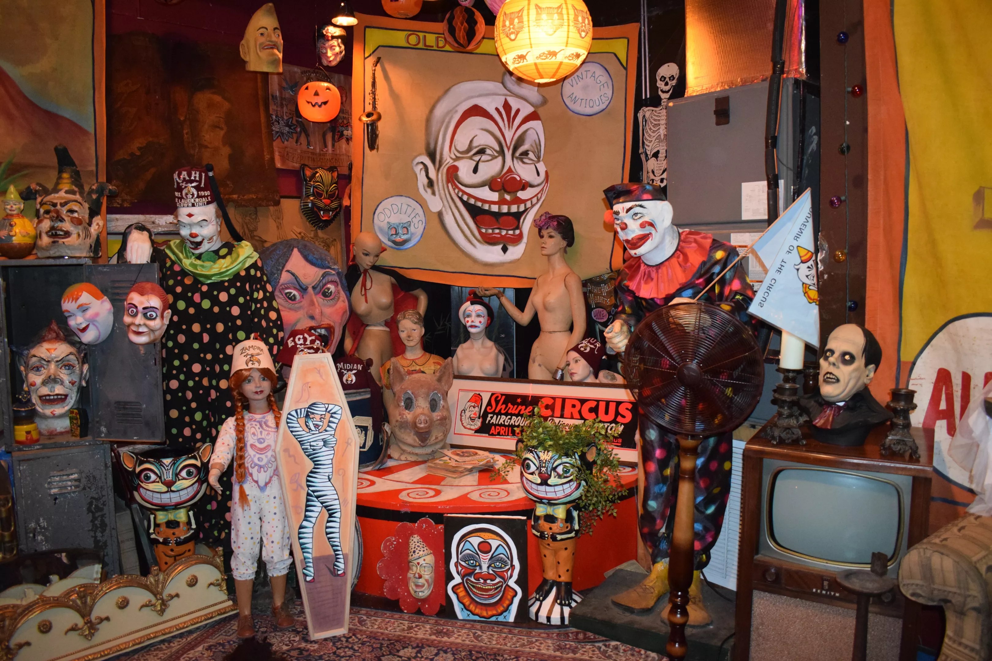 It’s this level of object empathy that permeates Old Ghosts, found just off I-595 in Fort Lauderdale. The store is home to a collection of antique oddities, peculiar artifacts from some bizarre avenue of world history: taxidermy animals, papier-m’ché clown heads, carnival sideshow banners.