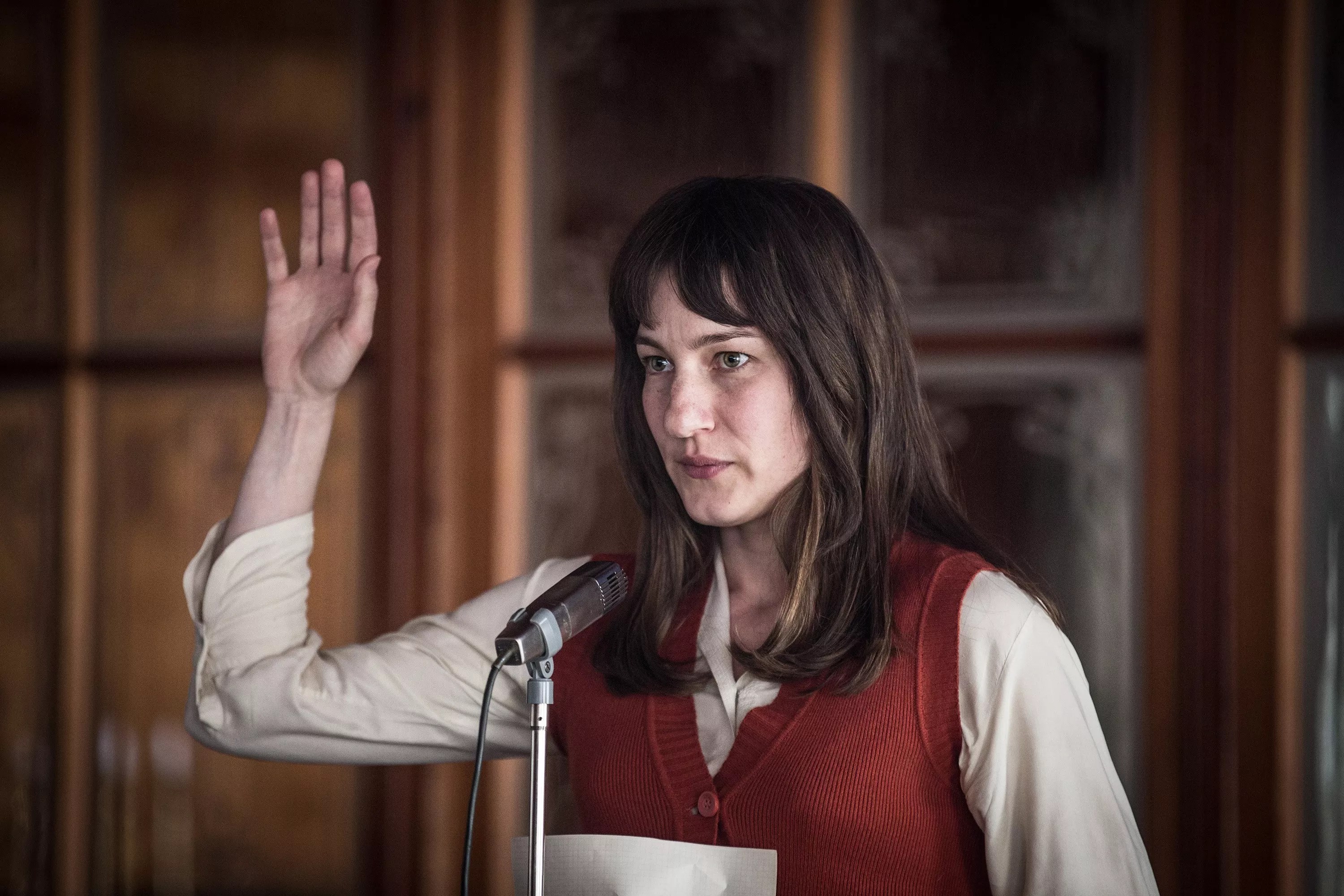 Volpe depicts Nora’s awakening as an avalanche down the Alps, one that can’t be stopped. The biggest snowball comes from a sex workshop, where she has her own Fried Green Tomatoes Towanda moment and for the first time sees her vagina. “My vagina is a lion,” she says, before Volpe transports us to a nearly surreal dance floor, where Nora sways and thrashes her hair back and forth, while the shards of light reflecting off a disco ball seem almost to emanate from within her body. Though the scene is fantastical bordering on whimsical, Volpe never drops the seriousness of the story. Judith Kaufmann’s cinematographic style favors shadows that frame the faces of these women, and at times her camera pushes in for quick zooms like we’re in a tense Martin Scorsese picture. Only instead of gangsters, we’re watching suffragettes in an impossibly tiny town toil and scheme their way to the right to vote.