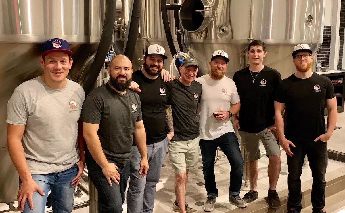 The 3 Sons Brewing team including owner-brewer Corey Artanis (third from right).