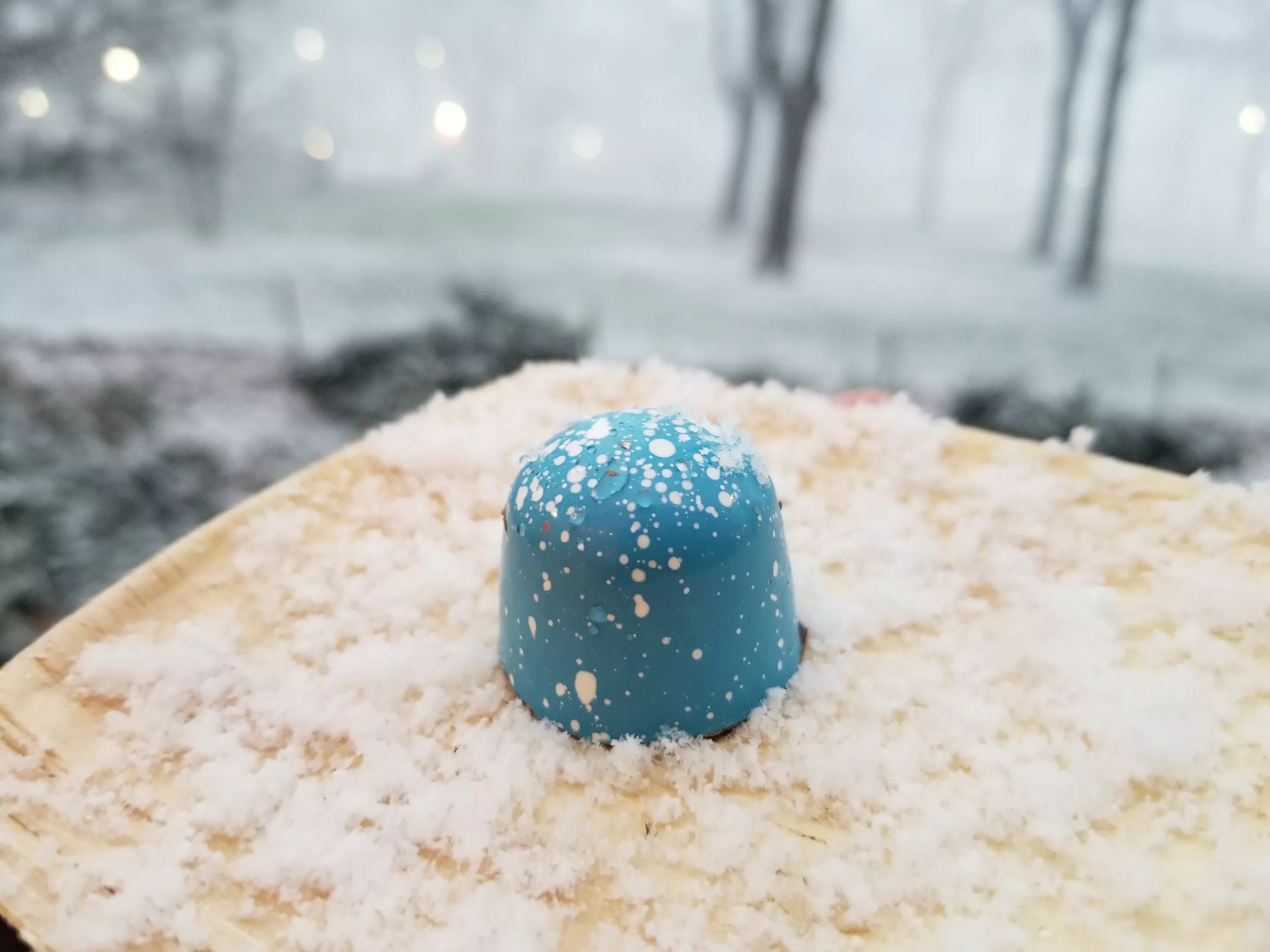 Exquisito’s chocolate bonbon shaped like a robin’s egg.
