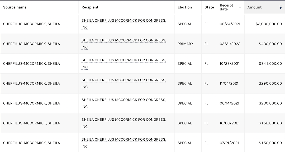 Records show the South Florida congresswoman loaned herself millions of dollars for her campaign during the 2021-2022 campaign cycle.