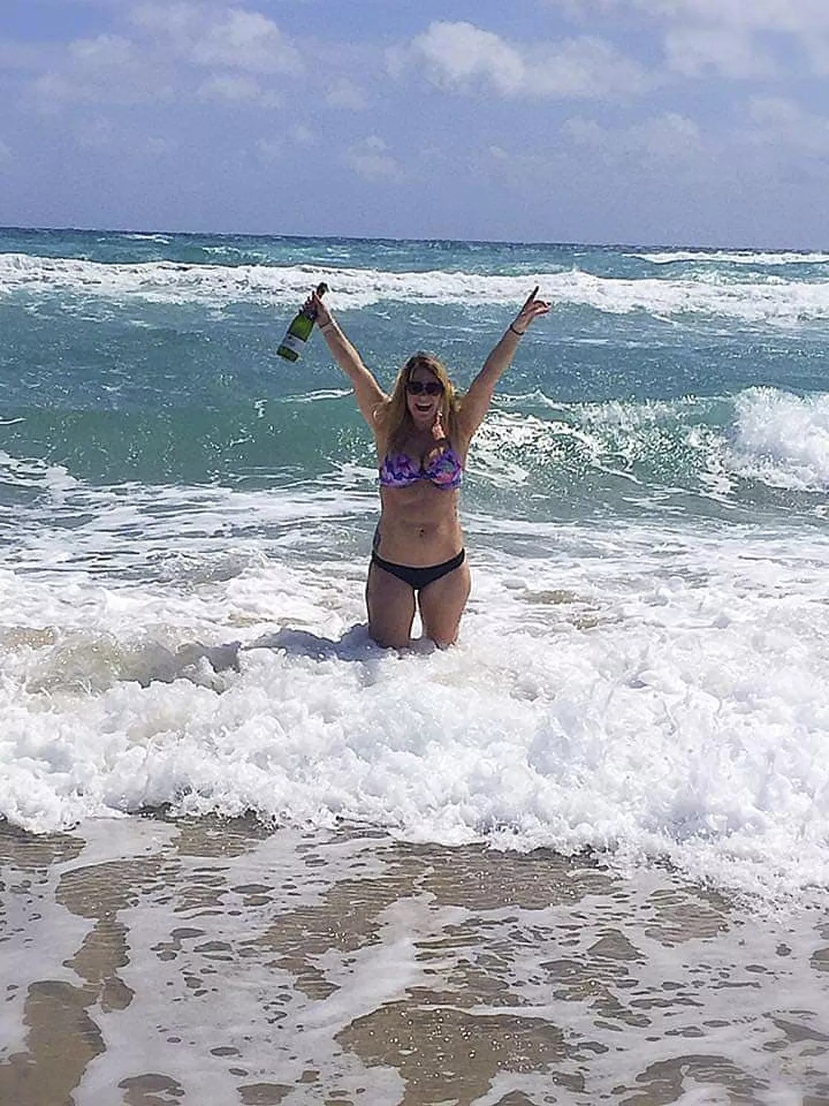 That day, Randy captured what would become the last photo of Brooke while she was alive. Standing in the ocean against the backdrop of a sunny blue sky and crashing waves, the 21-year-old smiled, her arms extended all the way toward the sky, the champagne bottle in one of her hands.